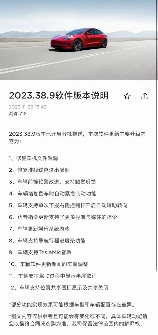据媒体报道,官方已经向国产版Model 3 焕新版、Model 3、Model Y三款车型推送了最新的OTA升级。