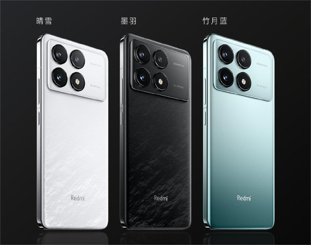 Redmi K70 Pro 采用全新高亮金属中框,去屏幕支架设计,镜头模组部分采用高透玻璃 Deco,可选墨羽、晴雪、竹月蓝三款配色,搭载 6.67 英寸屏。
