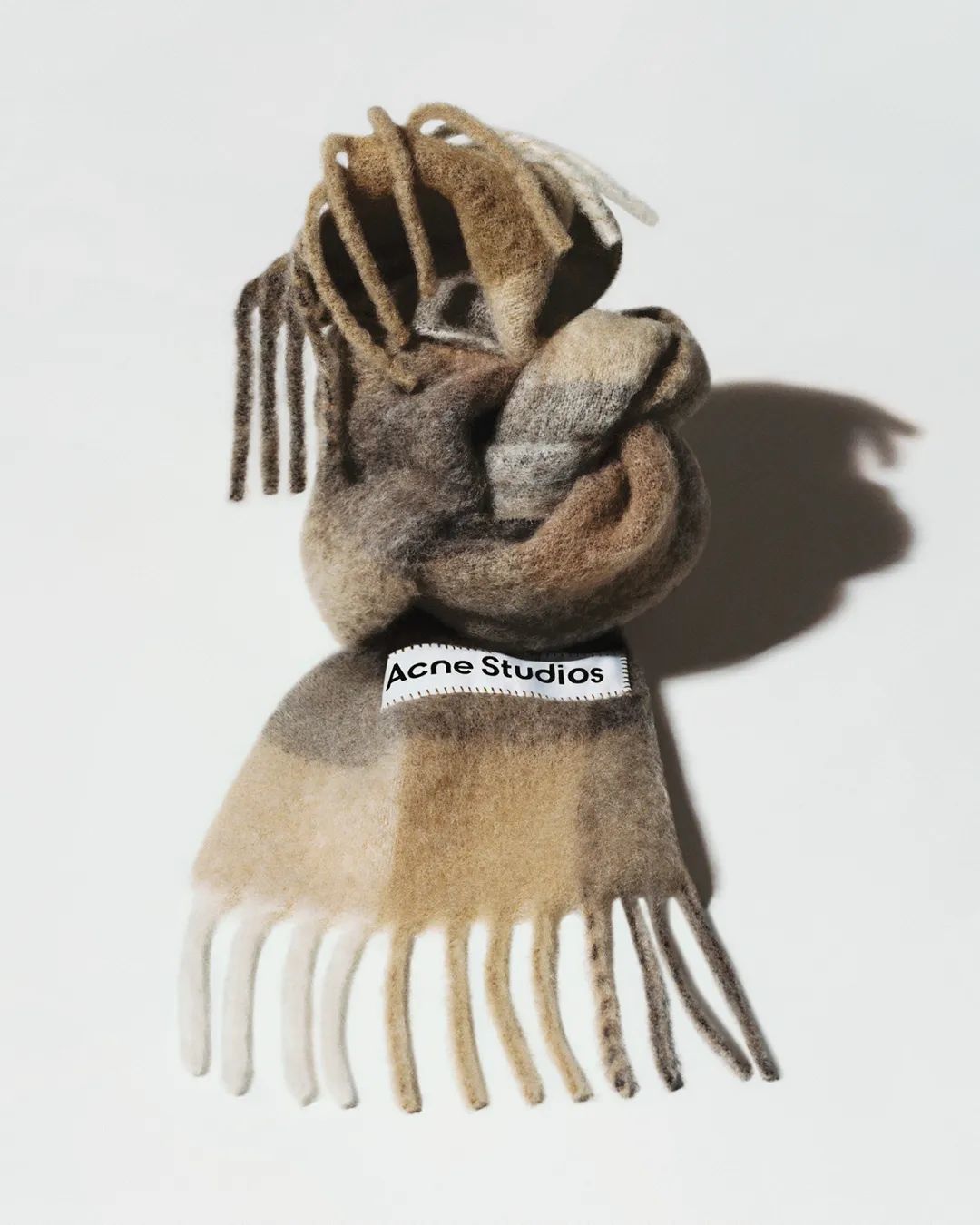Acne Studios 标志性的舒适羊毛、羊绒和马海毛围巾,于 2023 秋季以崭新面貌别致呈现。经典的超大款及细长款围巾被融入全新配色与图案——格纹、纯色、格子呢和条纹令其焕发新的生机。于本季推出格纹徽标提花围巾,以全新色调点缀标志性 Acne Studios logo 瞩目呈现。经典流苏羊毛围巾被重新构想,以活力的泡泡糖粉色焕新呈现,磨边围巾则采用了精致的羊绒材质。部分精选款式亦可通过绣以彩色字母、数字与 Acne Studios 设计的符号进行个性化定制,使其成为理想礼物之选。