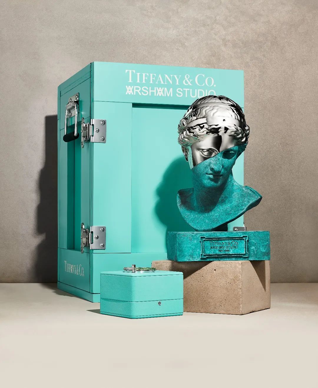 内部放置联名限量版 Tiffany T1 系列手镯的《Venus of Arles》半身雕像,将被置于饰有金属搭扣的定制 Tiffany Blue® 板条箱中,随附内含联名标识白色手套的蒂芙尼蓝色礼盒。Tiffany & Arsham Studio 联名半身雕像与联名限量版 Tiffany T1 系列手镯将在今年 12 月于全球同步发售。