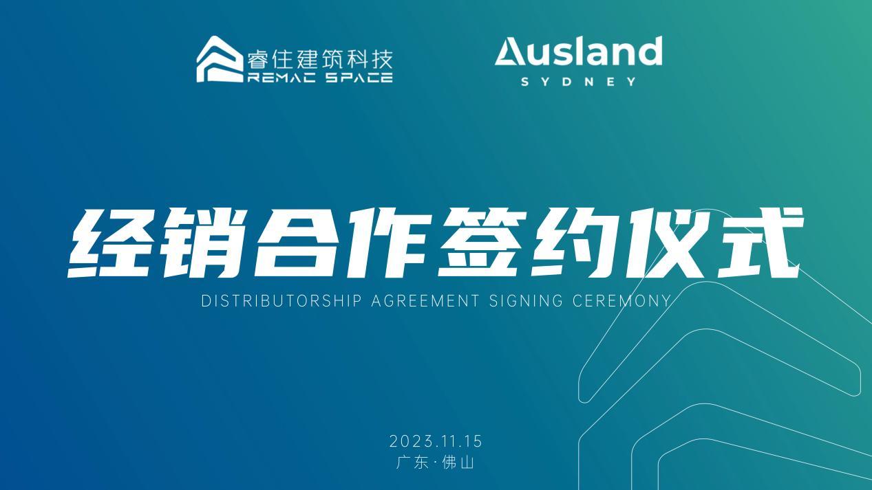 近日,澳大利亚Ausland Sydney与珠海市睿住建筑科技有限公司(下简称“睿住建筑科技”)在佛山顺德举行了经销合作协议签约仪式。双方将基于新型建筑工业化领域的产品研发、制造及销售开展深度合作,共同推动绿色建筑在全球的普及和发展。