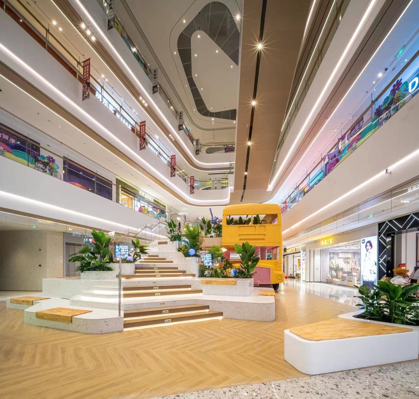 另一边,把公园和星空搬进商场。从地下到屋顶,垂直设计“星际巡游,承载未来”的主题,以几乎无处不在的天文要素和绿色要素,呼应人们对自然和浩瀚宇宙的向往,同时匹配亲子家庭和年轻群体的心中热爱。