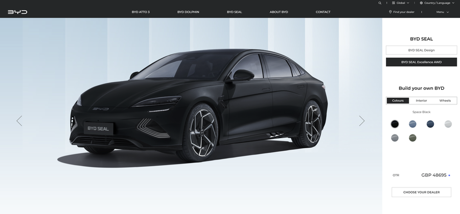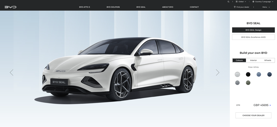 比亚迪海豹EV目前在英国上市。在比亚迪英国官方网站上面,单电机版本起售价45695英镑,45695英镑折合人民币约为41万多元。双电机四驱版本起售价48695英镑,48695英镑折合人民币约为43万多元。(比亚迪汽车在海外卖得价格普遍要比国内贵出很多。)