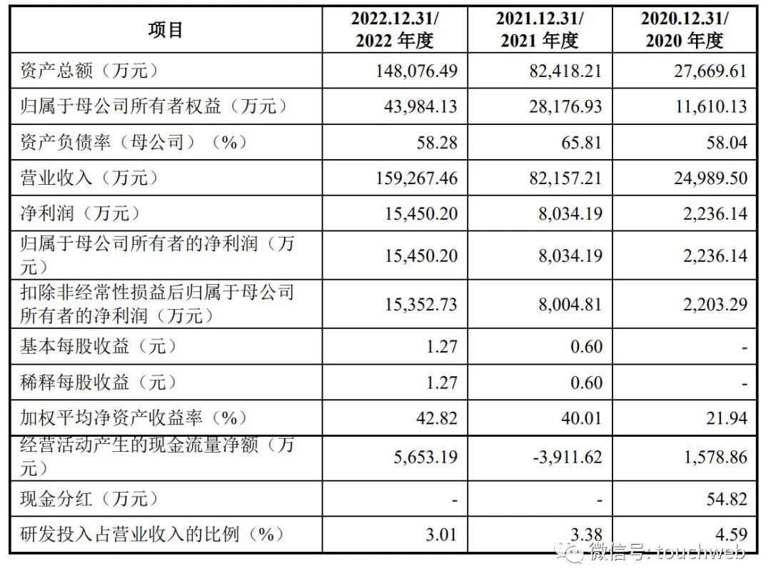 西典新能2020年、2021年、2022年营收分别为2.5亿元、8.2亿元、15.9亿元;净利分别为2236万元、8034万元、1.55亿元;扣非后净利分别为2203.29万元、8004.8万元、1.53亿元。