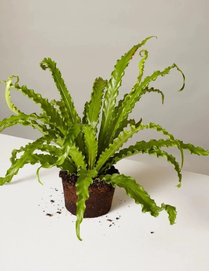 鸟巢蕨有各种各样不同的品种,有一些甚至会被误以为是鹿角蕨,就比如常见的“鱼尾山苏花”,它的叶子末端看起来就像鱼儿的尾巴一般有非常多的小裂叶,有些人就会将它误认成是鹿角蕨。