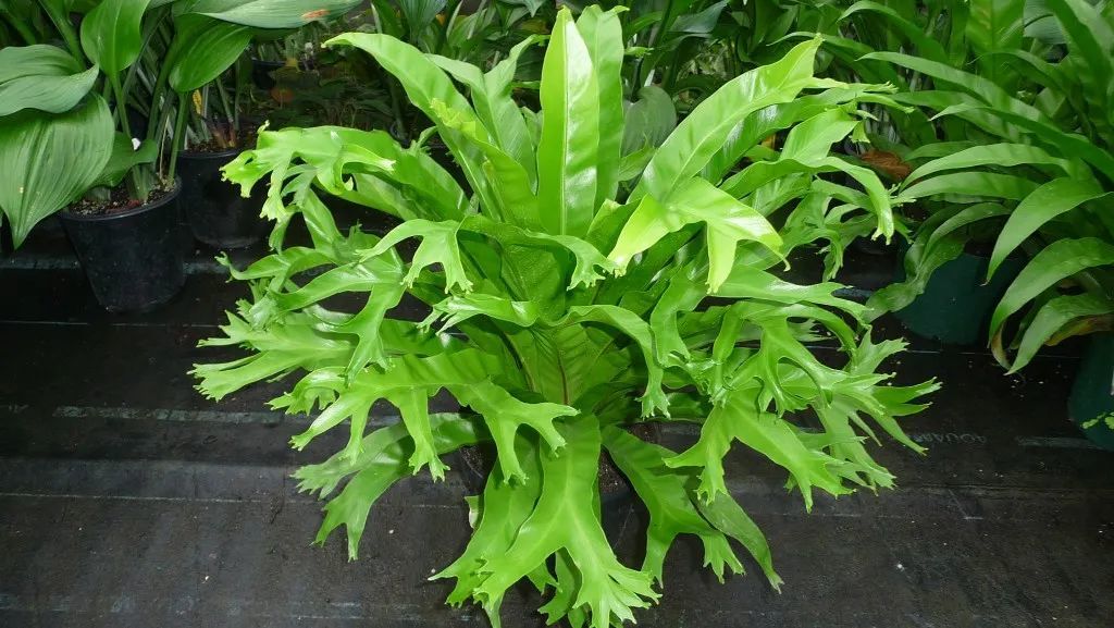 鹿角鸟巢蕨经常被误以为是鹿角蕨,其实它只是叶子顶部有很多裂叶的鸟巢蕨。