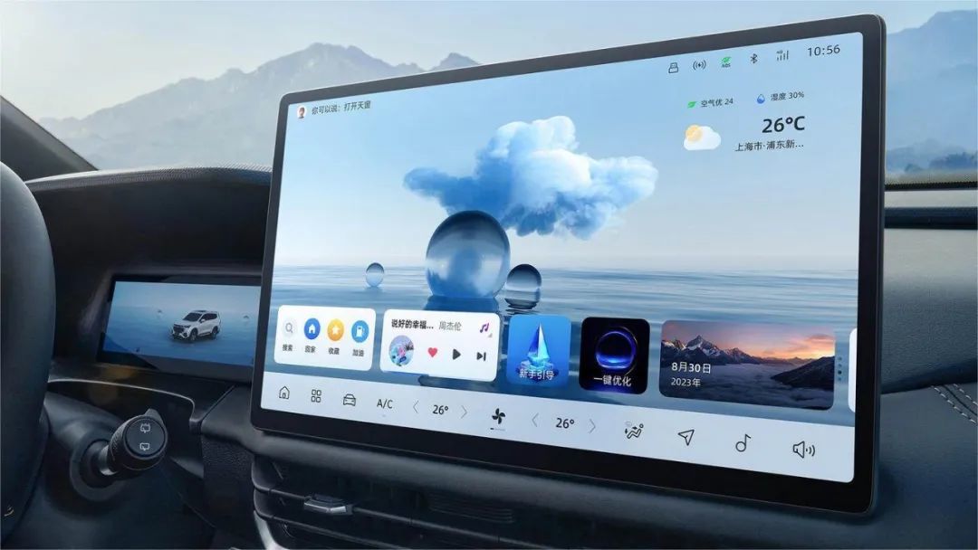 另外,2024款豪越L的车机也迎来了全面升级。车机系统由初代的银河OS升级成了银河OS 2.0版本,并且将12nm制程的E2座舱芯片升级成了7nm制程的E04高性能芯片。全新的系统和高性能芯片让整套车机系统使用起来更加流畅。
