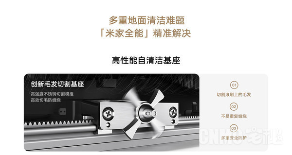 具体配置上,米家全能扫拖机器人M30 Pro基座创新集成自动切割毛发技术,完成清洁任务回到基座后,可以高效切断缠绕在滚刷上的毛发,同时超强挡吸力将碎发吸入尘盒内,一站式解决滚刷毛发缠绕问题。