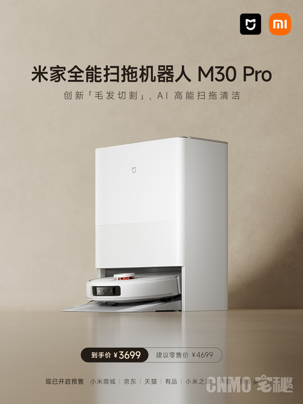 【宅秘新闻】12月1日,小米智能生态官方宣布,米家全能扫拖机器人M30 Pro新品上市!该扫拖机器人采用创新“毛发切割”,一站式解决毛发缠绕,AI避障、AI清洁全面升级,到手价3699元,现在已经开启预售。