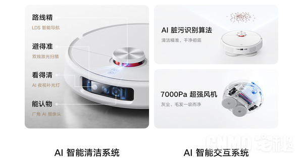AI方面,米家全能扫拖机器人M30 Pro支持人眼级AI物体识别,能识别拖鞋、袜子、体重秤等55种物体,灵活避开不易卷物。AI脏污识别算法加持,还能实时识别地面多种颗粒脏污,智能复扫。还配备了LED夜视补光灯,可以根据环境光线智能亮灯或熄灯。暗光环境下,也能识别前方障碍与脏污,高效清洁。
