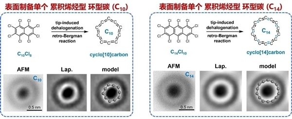 2019年,IBM实验室与牛津大学研究团队制备出单个的环型碳C18,但对于更小的环型碳,由于尺寸太小其合成变得更具挑战性。