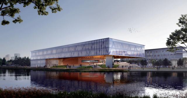记者获悉,上海交通大学崇明校区占地面积约350亩,规划建筑面积159576平方米,设计方案遵循科技与自然共融的理念,未来将建成一座生态低碳、空间开放共融的共享校园。
