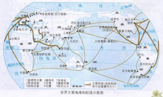 目前,世界上共有四大海洋航道,分别是往返于中美之间的亚洲-北美航道、往返于北美和欧洲之间的北大西洋航道、途经巴拿马运河连通美洲东西海岸的航道,以及途经马六甲海峡和苏伊士运河两大节点的亚欧航道。