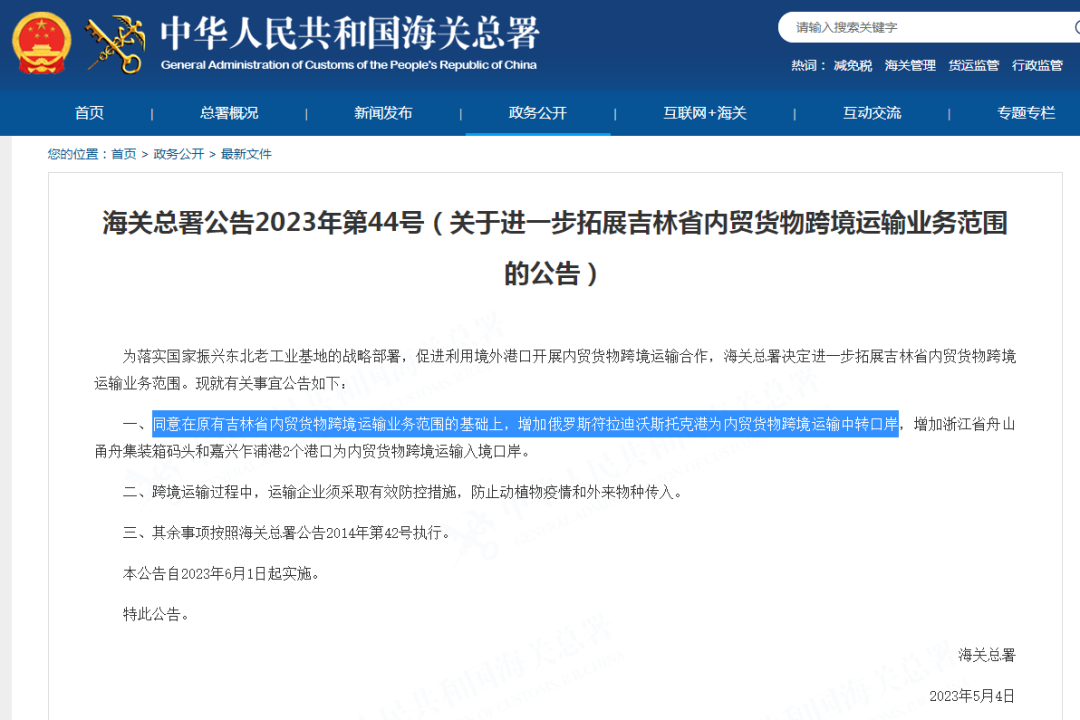 今年 5 月,国家批复同意吉林将海参崴港作为内贸货物中转口岸,将浙江舟山和嘉兴作为内贸货物跨境运输入境口岸。这意味着,从吉林出口到俄罗斯的货物不用征收关税,重新进口到浙江也不用征收关税,相当于海参崴成为了东北的一块飞地,成为了 2000 多万吉林人梦寐以求的出海口。