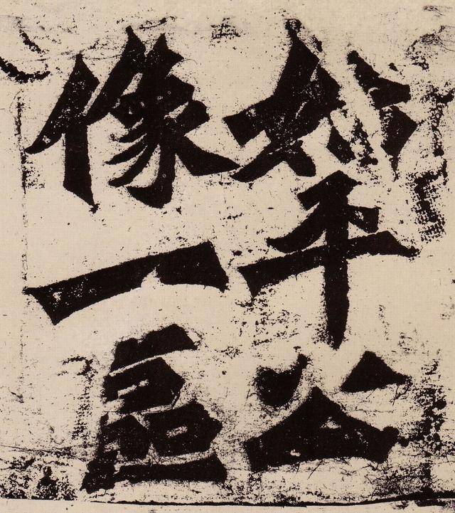 第三、《始平公造像记》的线条是阳文凸刻。从书丹对镌刻的制约作用来说或刻刀对线条的影响来说,阳文凸刻与阴文凹刻有所不同。阴文凹刻,刻工刻掉的是文字的线条,文字线条对刻工用刀的制约作用较小,刻刀对线条的影响较大。如果刻工以刀代笔,进行二次创作,书家书写的线条就会出现不同程度的变形。即使不是自由发挥,刻时稍不注意,刻出来的线条也会与书写的有所不同。例如上面说的“之”、“才”撇的起笔,“甲”“田”部的横折,“事”“彐”部的横折和钩的下侧等处就是如此。。但凸刻刻掉的是线条以外的部分,这时候文字的线条对刻工用刀的制约作用较大,刻工自由发挥的余地较小,不可能以刀代笔进行二次创作。虽然在《始平公造像记》中我们也可以看到刀的痕迹,例如“像”横撇的右上端、“一”字的右下端生硬的折线就是用刀刻出来的。但这种情况在《始平公造像记》中很少。