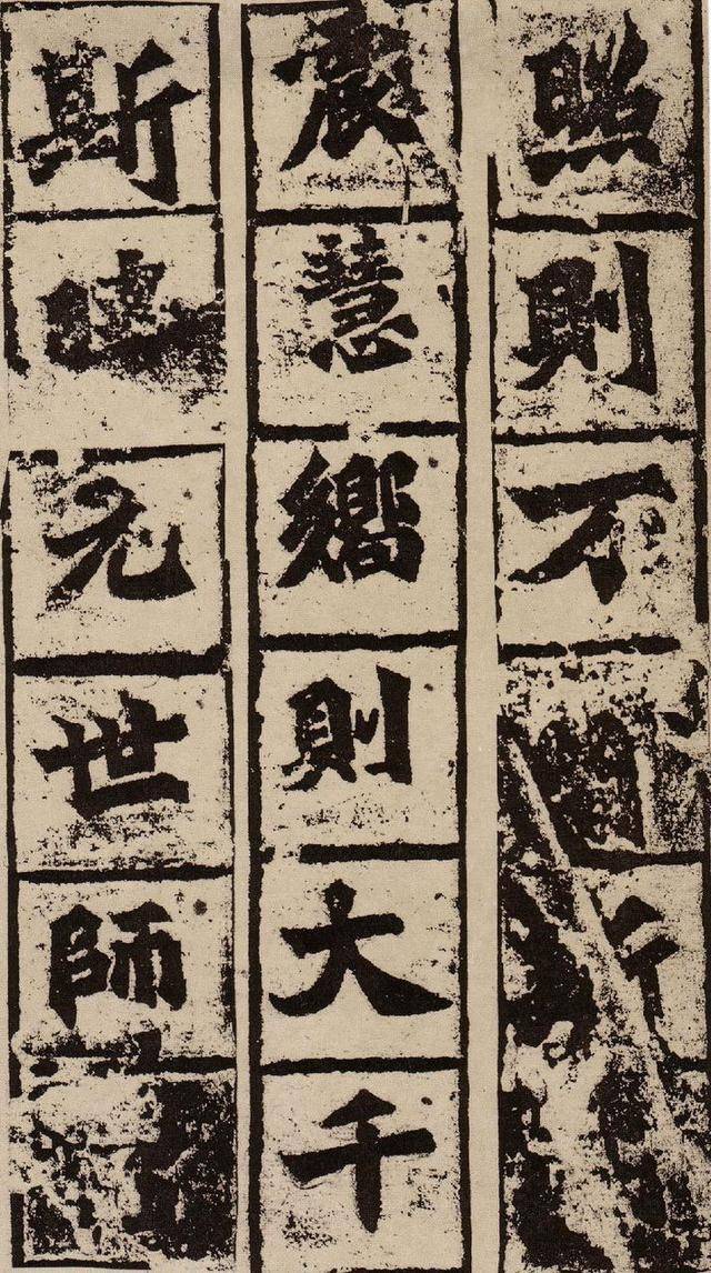 这种笔法在初唐欧阳询的楷书中还可以看到,在颜真卿、柳公权之后,流传藏头护尾强调两端的“∽”型笔法,由于赵孟頫“用笔千古不易”的影响,明代以后这种“∽”型笔法成了金科玉律,成了衡量笔法正误的唯一标准。清代碑学之所在笔法上没有实质性的突破,原因正在这里,人们屡屡说“魏碑的方笔是刻出来的”,原因也在这里。魏碑方笔的存在告诉我们,笔法并不是千古不变的,某一历史时期的笔法不能作为衡量笔法正误的标准。