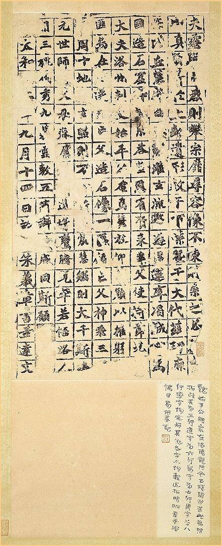 《始平公造像记》全称《比丘慧成为亡父洛州刺史始平公造像题记》,北魏太和二十二年(489)九月刻于洛阳龙门山古阳洞北壁。《始平公造像记》在魏碑中具有特别重要的地位,值得我们注意的至少有三点:第一,它的主人是洛州刺史。第二,有撰文、书丹者的署名。第三,文字与界格都是阳文凸刻。洛州刺史品高位尊,因此这通题记当是精心之作。撰文者孟达、书丹者朱义章既然署名,在当时应是有一定名气的人,为品高位尊的洛州刺史撰文、书丹也不会马虎应酬。刻工虽无署名,但也非平庸之辈。特别是通篇阳文凸刻,更可以使我们看清楚书写与雕刻的关系。