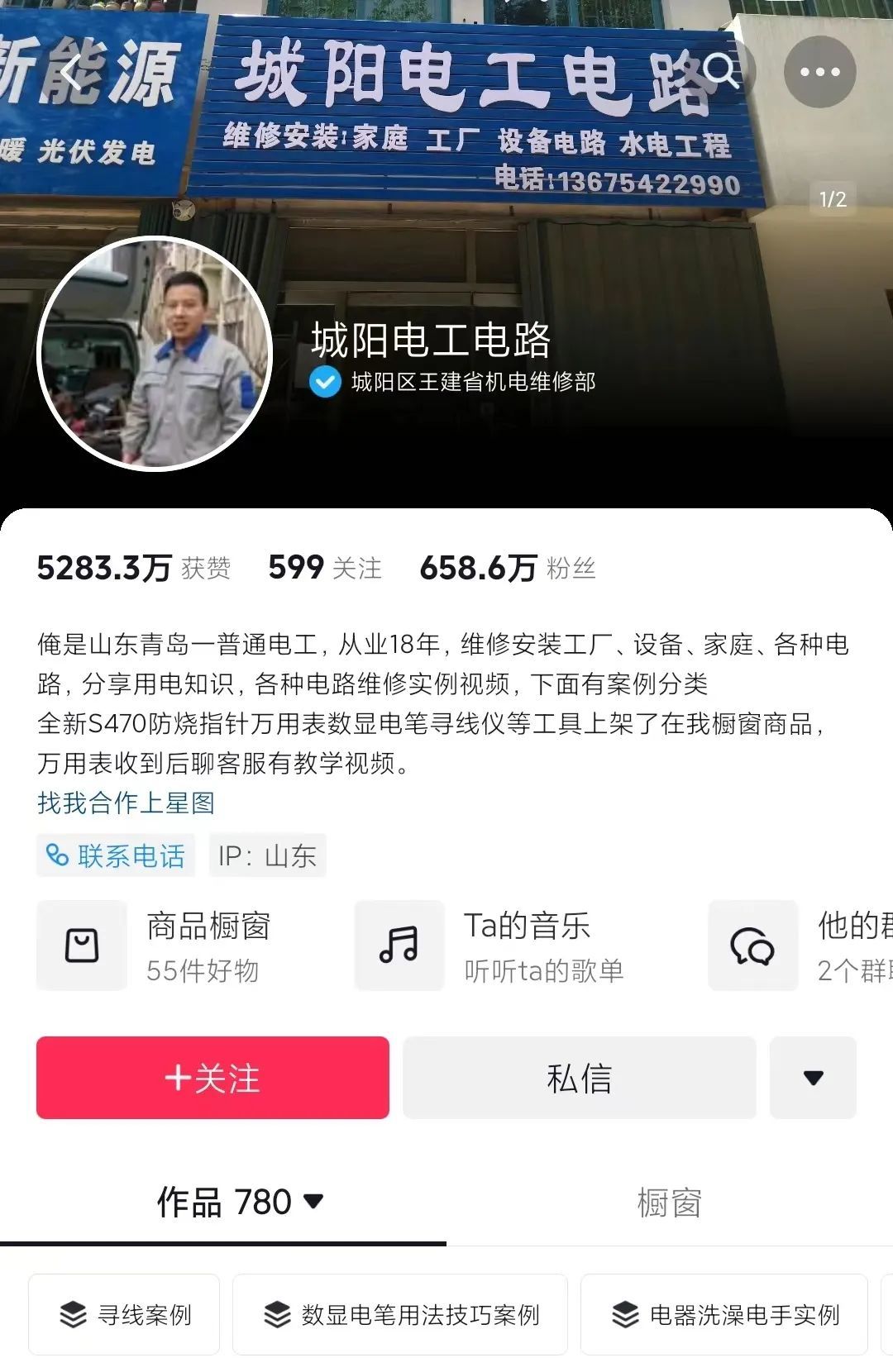 截至目前,@城阳电工电路 全网粉丝已近千万。从业十八年,他不仅维修了无数电路,还通过互联网,为千万网友做了用电科普。