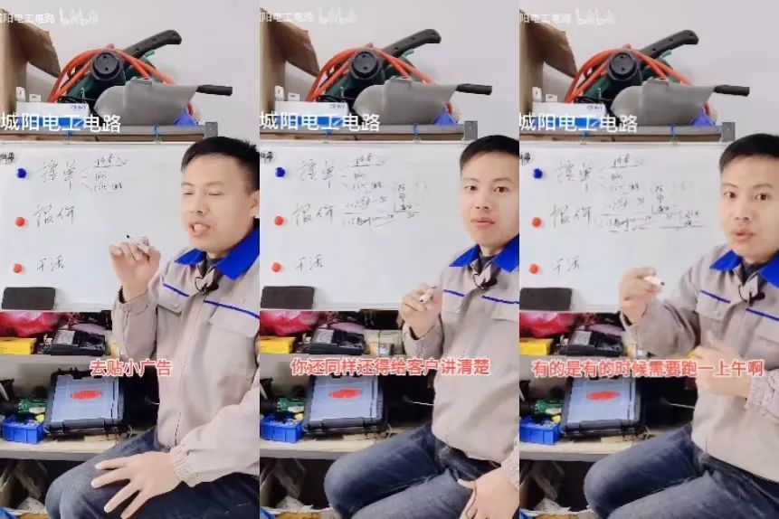 除了工作日常,@城阳电工电路 的视频也会进行知识科普。在视频中,王师傅不仅教大家如何检测家庭电路,还教大家如何接活、报价、干活。
