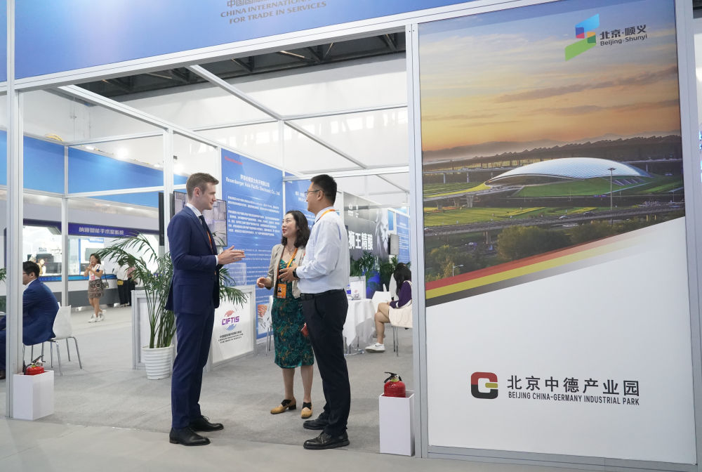 在2023年中国国际服务贸易交易会上,8家来自北京中德产业园的德国企业在国家会议中心的核心展区集体亮相。德国企业埃帕德咨询公司业务发展及政府事务总监毛润智说:“我们在北京看到了面向未来的新的发展动力,这里数字经济等产业发展迅猛,希望寻找更多合作伙伴,在中国扎根发展。”
