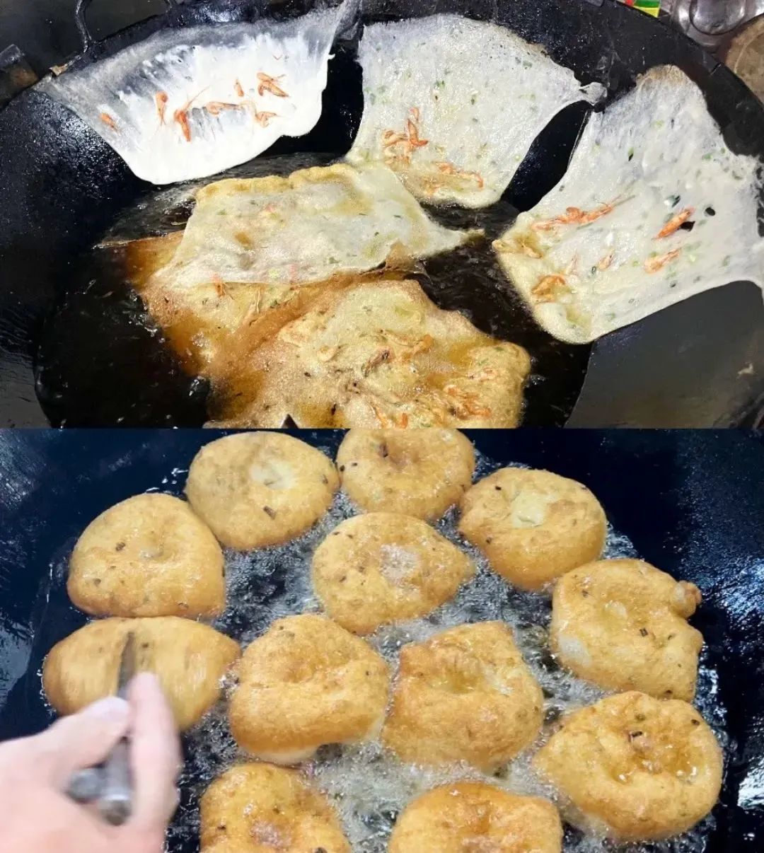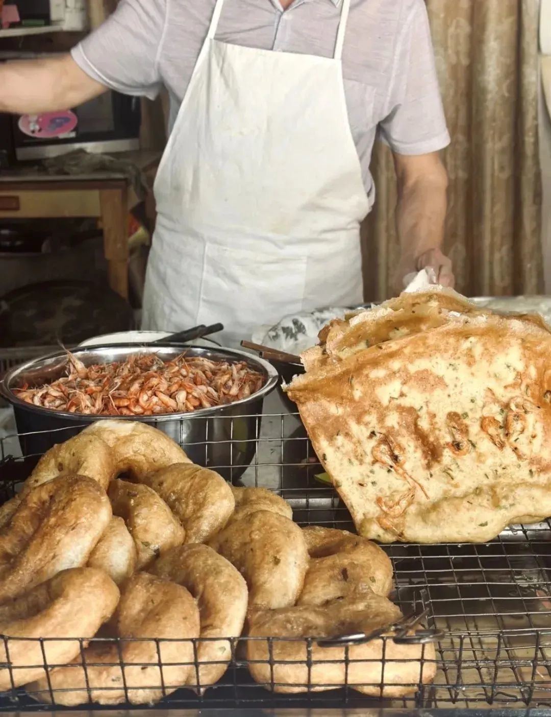 这家店在如皋也是老味道了,据老板说一天能卖出500~600个,油糍蓬松咸香,虾糍薄脆可口。