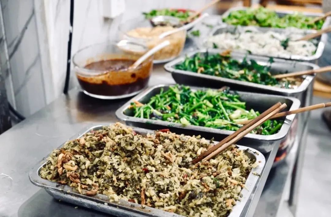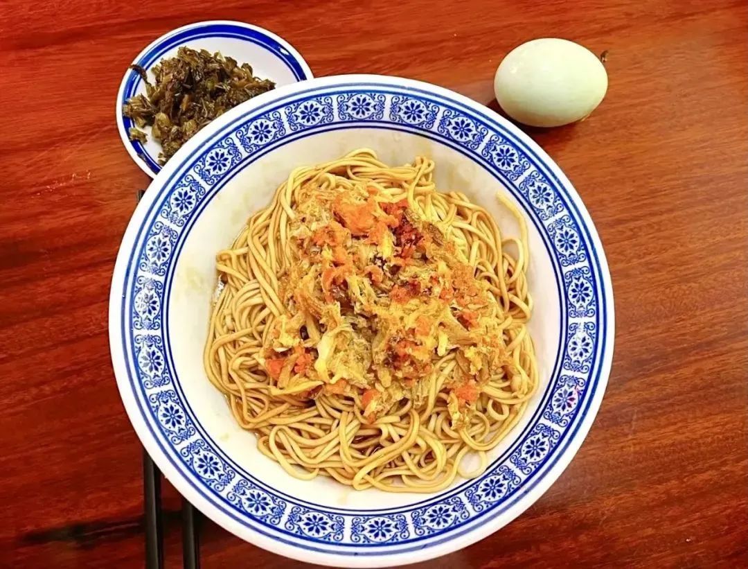 店内还有如皋特色的盘水面,俗话说“头伏饺子二伏面,好吃不过如皋盘水面。”这家面口感偏硬。浇头免费,青椒韭菜雪菜豆芽任选,边搅拌边吃,味道好得很。