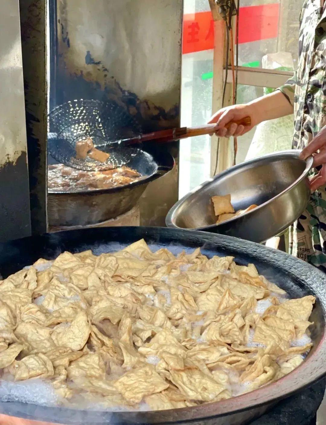 油炸:咀嚼起来像是油渣一般,酥脆可口,搭配店家自制辣酱好吃到停不下来。