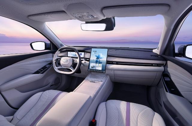 内饰设计部分,新车中控台区域搭载了三幅式平底方向盘、12.3英寸液晶仪表+12.3英寸中控屏+12.3英寸副驾驶娱乐屏组成的中控三联屏。配置方面,新车搭载了吉利银河OS车载智能操作系统(内置高通骁龙8155芯片)、L2级辅助驾驶、前排50W手机无线充电、AR-HUD抬头显示系统、10声道燕飞利仕音响、72色氛围灯、三区自动空调等配置。