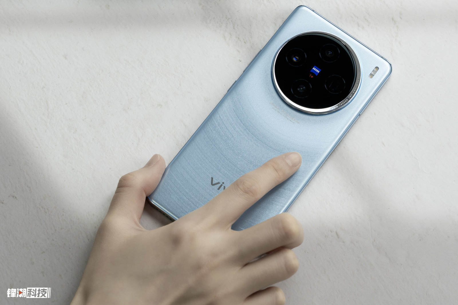 不仅如此,vivo X100 上的这个「星际蓝」配色还采用星轨微纳米光刻工艺,以镜头模组为圆心,在周围会有一圈圈线条,就像一条条的星轨,带给你奇妙的观感。