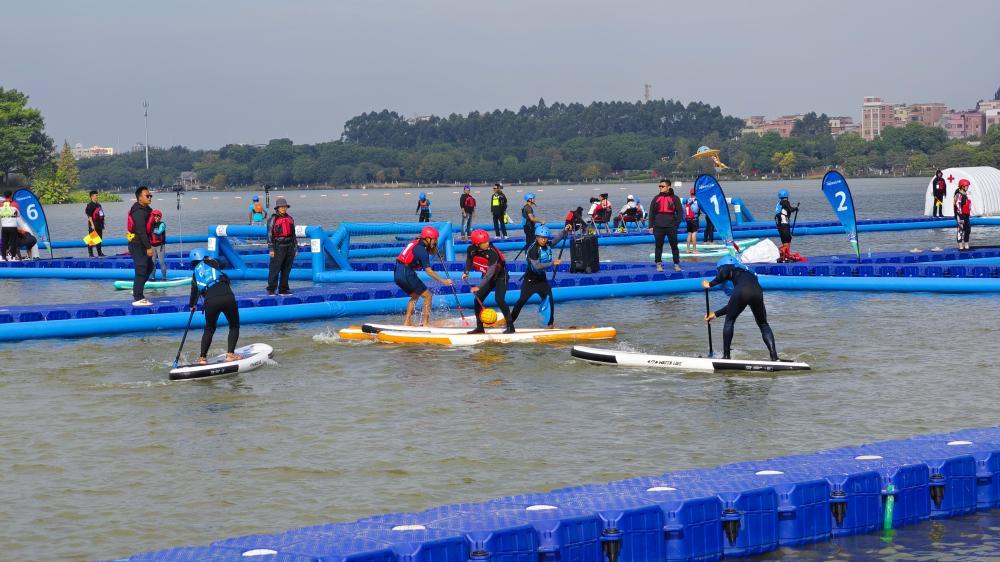 12月2至3日,2023中国桨板球公开赛(以下简称“公开赛”)在广州市白云湖国家水利风景区举行。南国初冬,由全国桨板球运动爱好者组成的46支参赛队伍共聚白云湖碧道,围绕男女混合桨板球赛公开组、U15组、大师组三大项目展开角逐,进行了多场精彩的水上运动比赛。