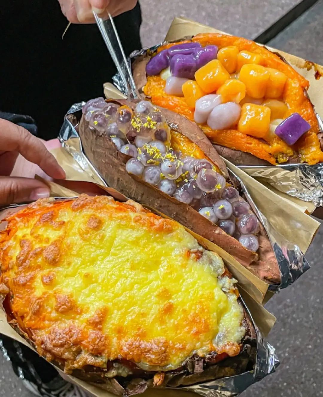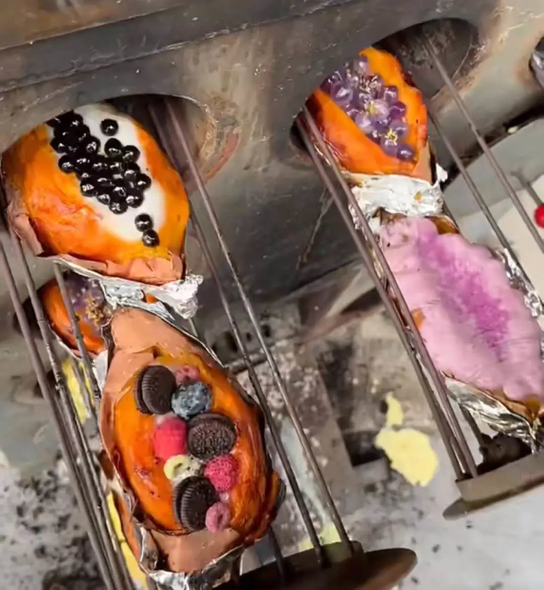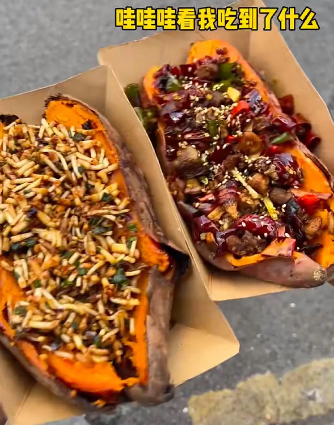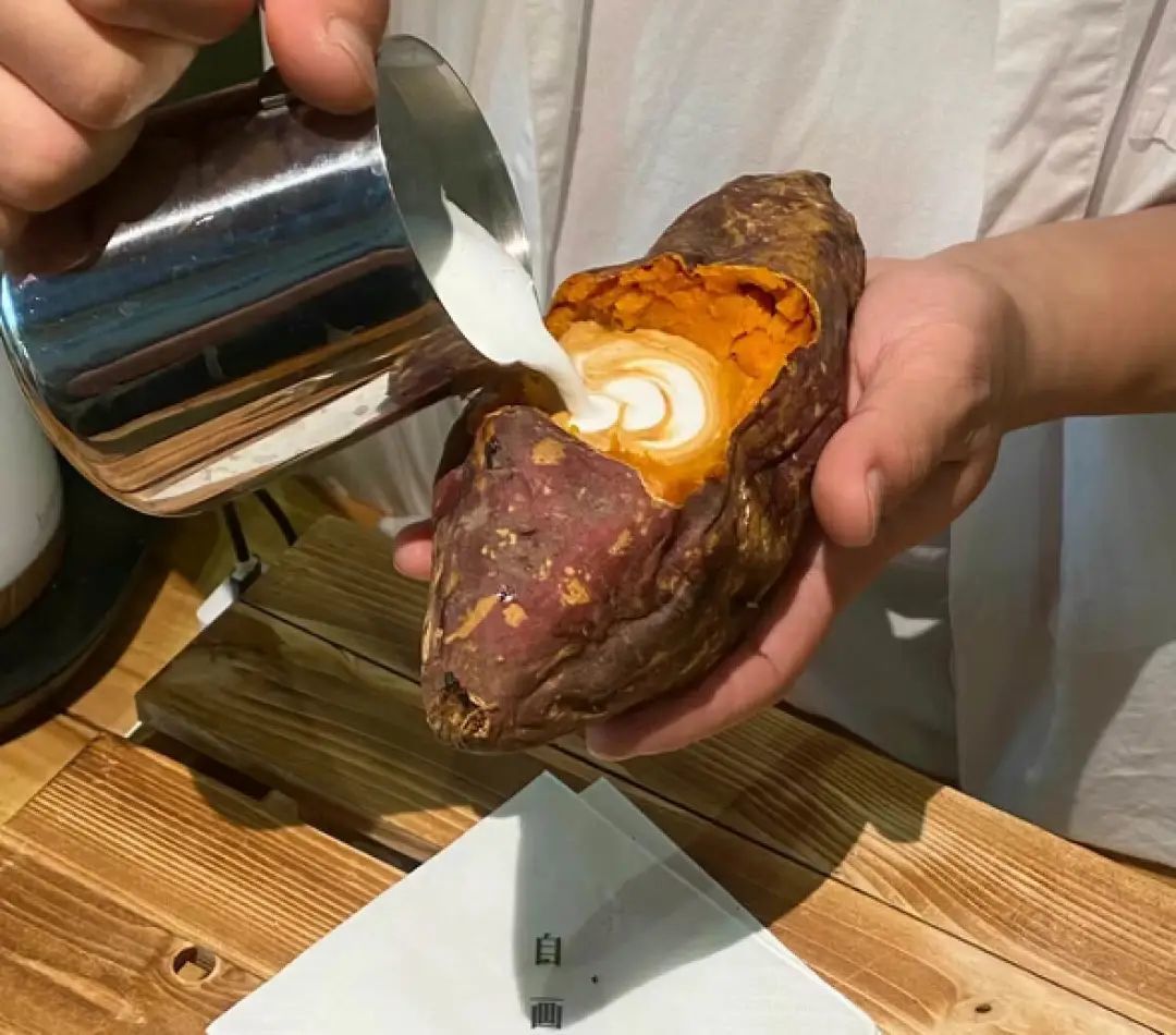 那些曾在奶茶圈风靡一时的小料如今都可在烤红薯的头上焕发第二春,搭配上“芋圆桂花烤红薯”和“麻薯奥利奥烤红薯”此等一看就知道必将成为下一个顶流的名字,虽然不一定可以口味加倍,但价格一定可以翻几番。