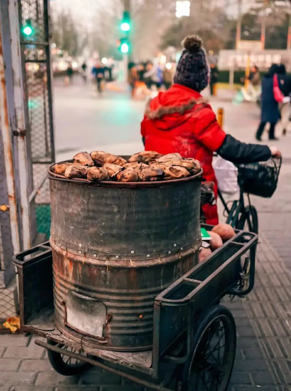 如今在一二线城市摆摊卖红薯的更像是街头景观,比如三里屯路边的红薯摊,地段消费水平也拉高了大爷卖红薯要价的勇气。