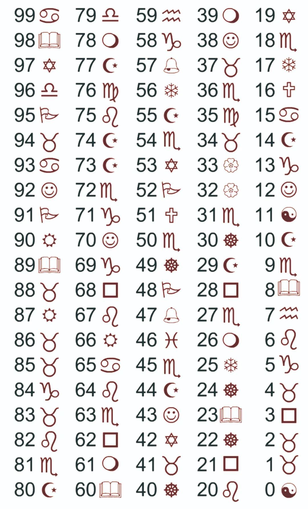 本文开头提到的那个“吉普赛读心术”,其实只是一个数字游戏,无论你思考的哪个数字,计算后的结果都将是9的倍数,仔细观察表格你就会发现,所有9的倍数对应的图形都是一样的!