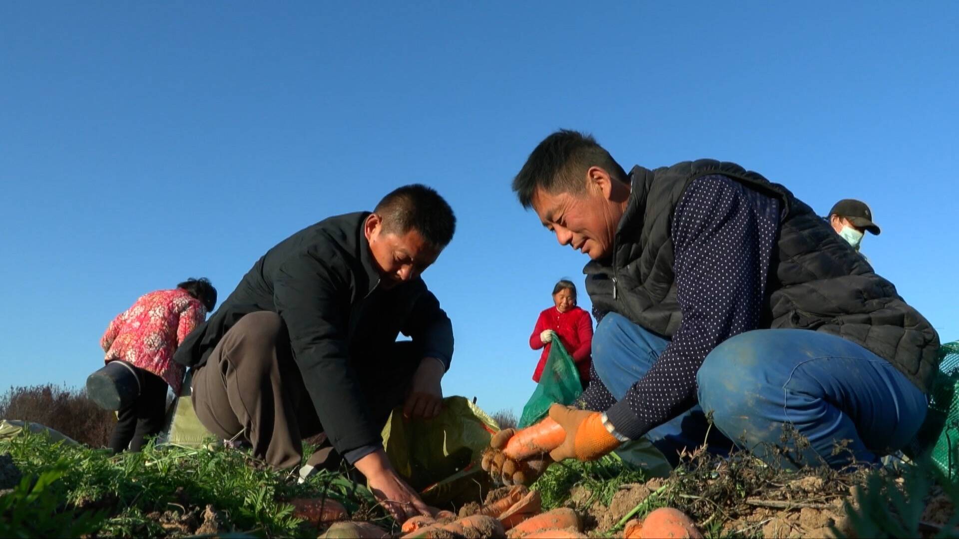 在成武县伯乐集镇东祝庄村的农田里,伴随着采收机械的轰鸣声,一垄垄胡萝卜破土而出,村民们将一个个色泽鲜亮、大小均匀的胡萝卜去缨、分拣、装袋、装车,一派热火朝天的丰收场景。