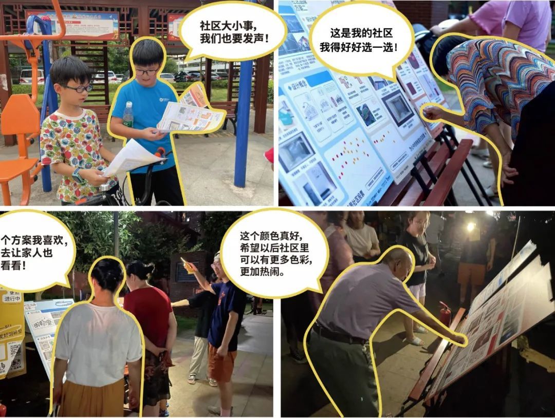 为了品牌和导视能够被居民理解和接受,视觉设计团队--武汉当地一个设计事务所结合了营造团队的前期调研数据进行了品牌方案设计,之后又带着这些方案在社区里和居民面对面讨论共创。