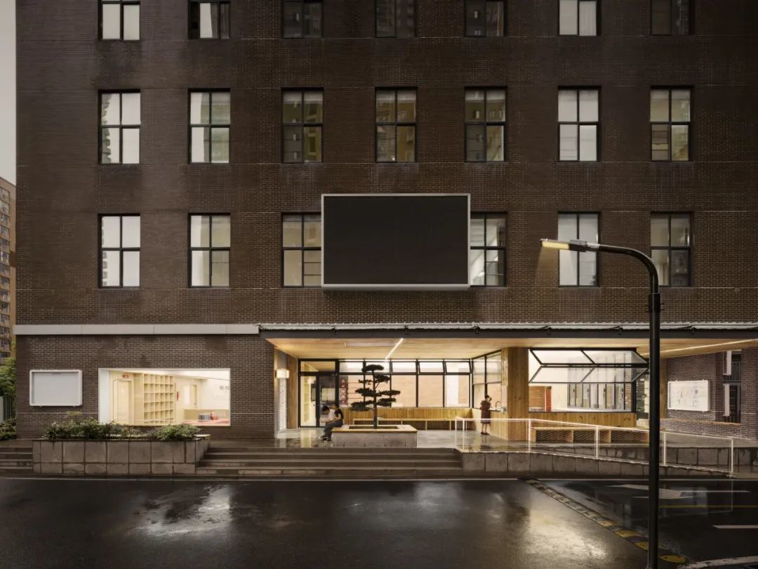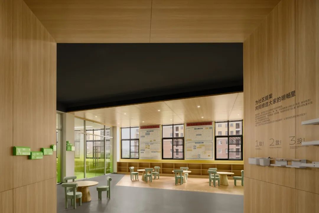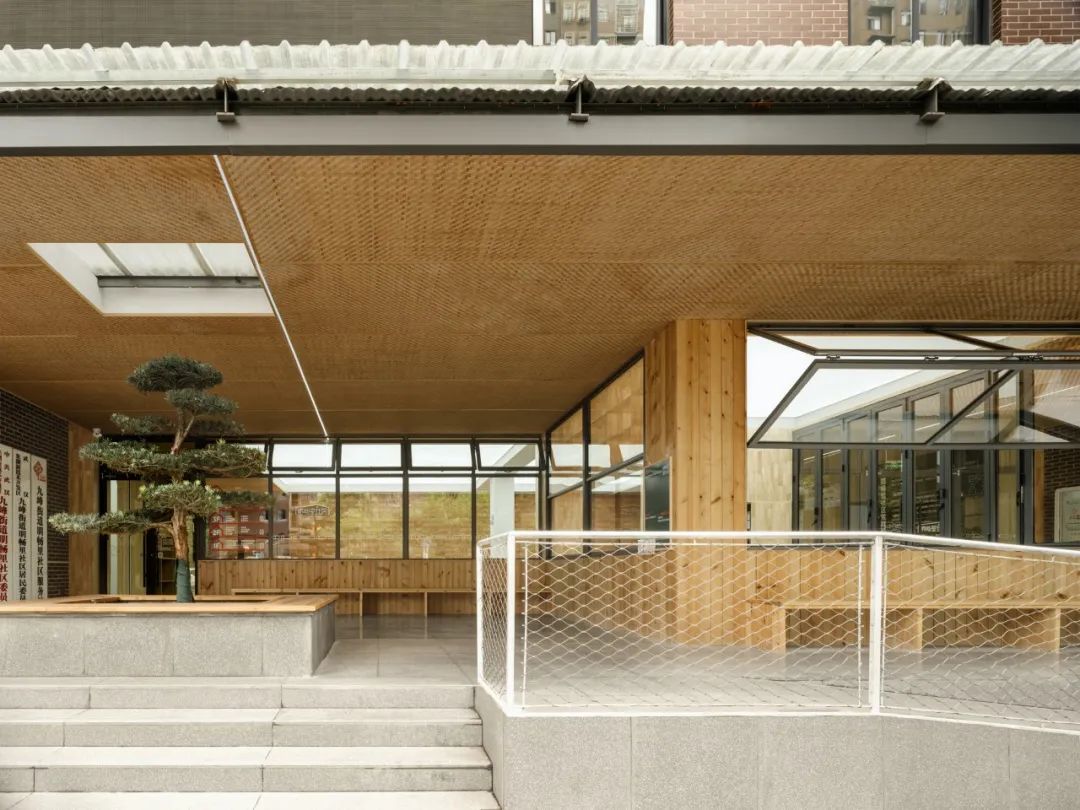 坐下来,让居民的活动和人与人的连接自然发生。门口有一棵可爱的小树,虽然尺寸不大,但也希望通过这样的意向,让居民认识到党群屋檐下是可以“大树底下乘凉好乘凉”的聊天场所。