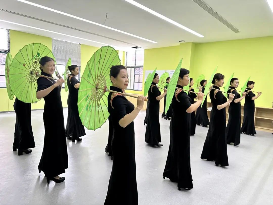 而在三楼,阿姨们身姿秀丽挺拔,穿着美美的旗袍飒飒地走起了秀;小朋友们在旁边的开放社群空间做起了植物拓染;合唱团的阿姨爷叔们则在声乐室上起了课k起了歌;爱运动的居民在新的乒乓球室挥洒汗水。不同年龄的居民都能在这里找到自己的同好和自己想做的事儿。