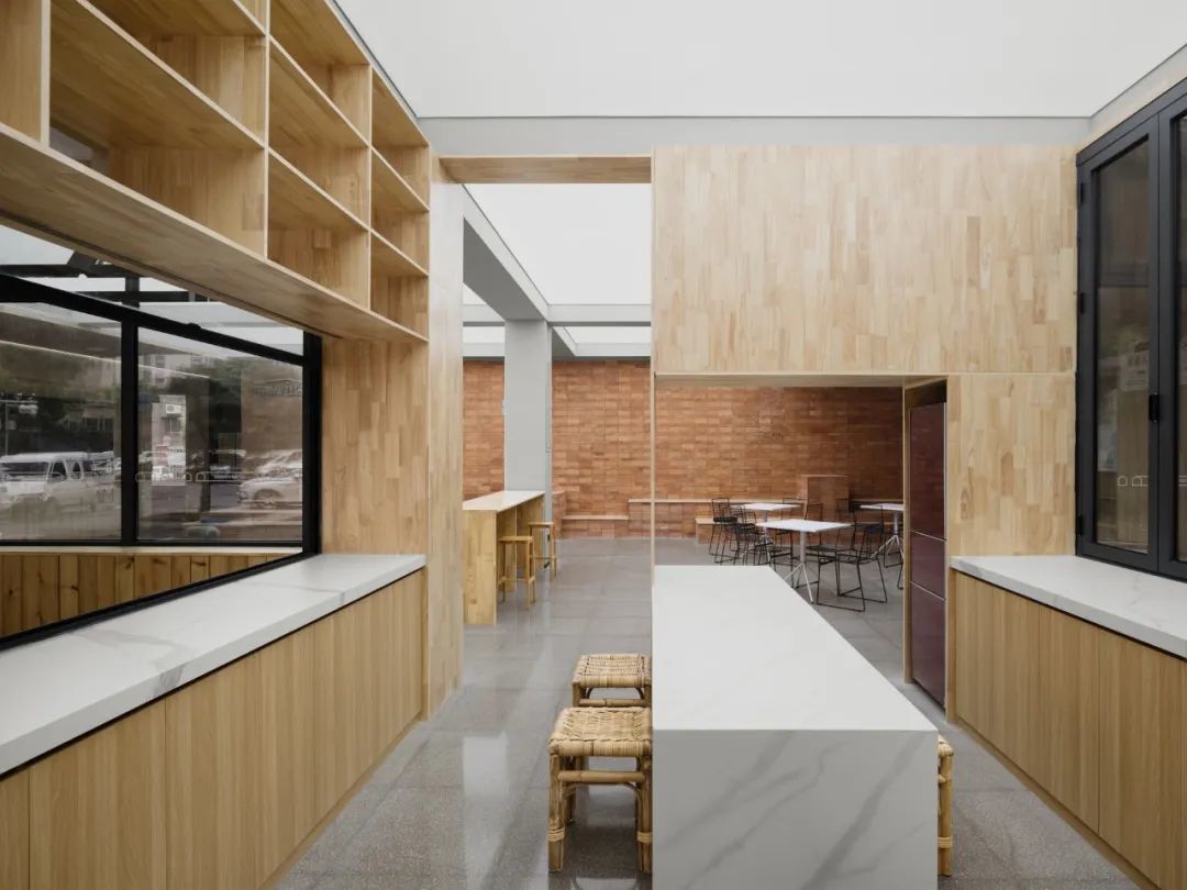 中心还设置了具有日常烟火气的共享厨房--“共乐灶”,设计通过大的推拉窗,使之连通内外,自然地消除室内外的边界感。这里不仅能开展社区活动,让居民找回过去一起在村里做美食的回忆,还能变身“档口”,为空间的社会化运营探索提供机遇。