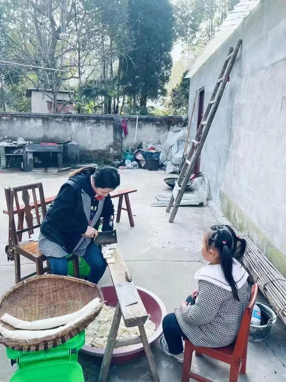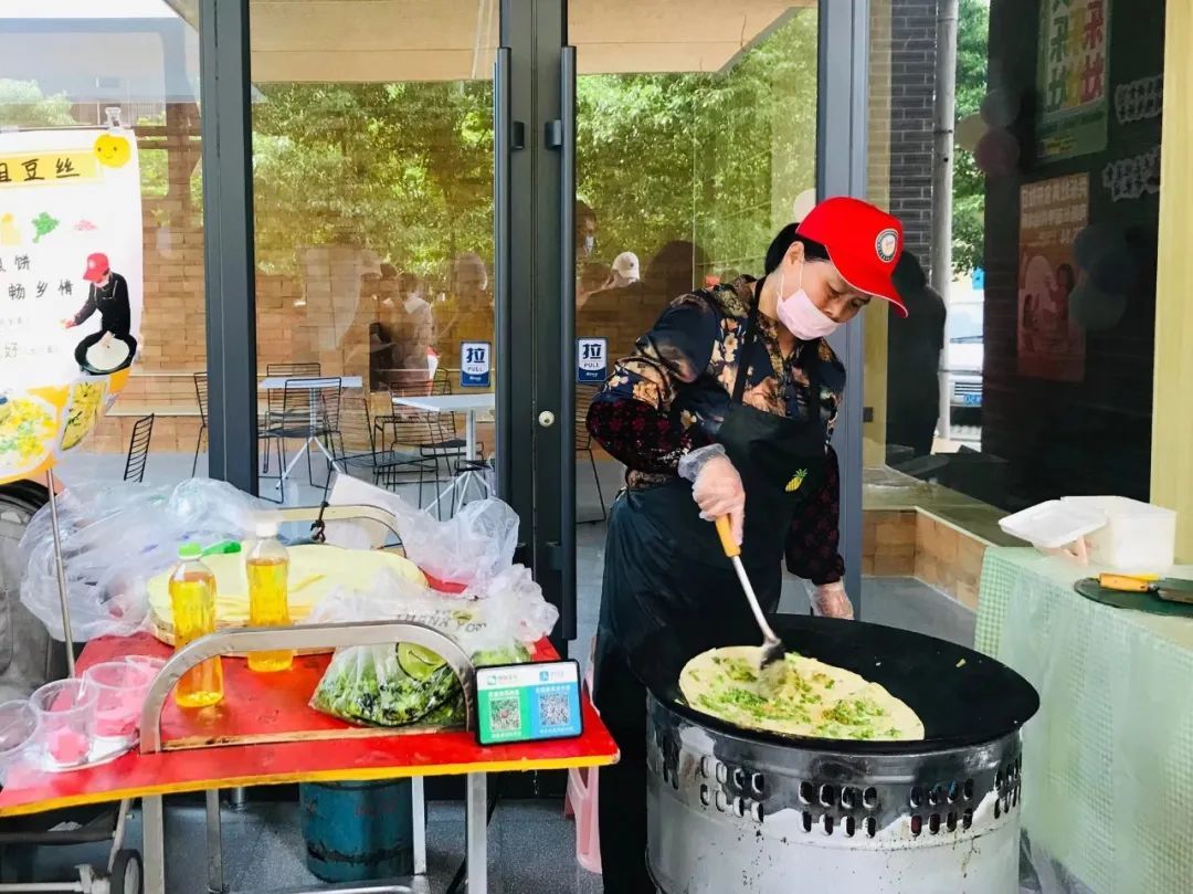 美食开放日当天特别热闹,居民二姐扛来了一口大灶,做起了豆丝,无论是小朋友、年轻人还是老年人都围了上来,买好后就捧着美食在档口前的窗口边吃边聊天。第一次参加社区活动的曾姐,不仅带来了自己蒸的馍馍,还带着社区的小朋友和居民一起做兔子馍馍,大家说说笑笑气氛热闹。