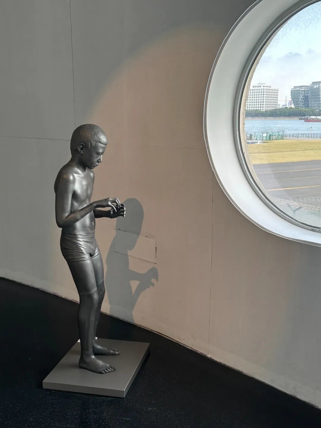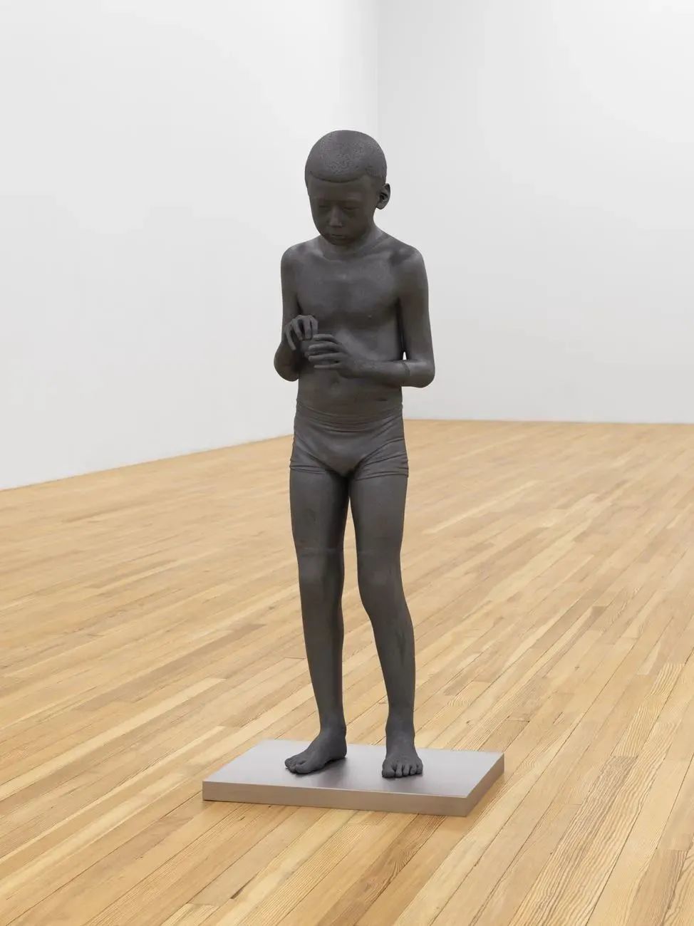 《小男孩》可被视为对“可乐计划”(2009-2011)的一次重新点题。相隔十年,分别从两个关键的终端介入“生产-消费”循环的母题,提出对于艺术生产的原始材料和经济层面的探询。与“可乐计划”对于“可乐”的物质呈现截然不同,在这一雕塑作品中,“可乐”作为物质乃至作为视觉符号都是全然缺席的,只有男孩的目光与手势的交会作出一个模糊的暗示。这是一个面部表情略显困惑紧张,半身赤裸的男孩,他的一切特征都被极度简化和模糊化至“亚洲男孩”这一极其抽象的层面,他可以仅仅是艺术家自身的代表,也可以是“东方”这一巨大群体的化约。男孩用纤细麻痹的手指紧紧握住缺失的能指,作开启状,并在生命中第一次品尝现代灵药。这一私密的、羞涩的、与物质主义欲望有关的雕塑形象也是颠覆性的,因为它令人联想起有关第三世界或全球南部无辜生命的标志性图像,以及那危险的双手所能触发与引爆的湮灭。雕塑的细致纹理也反映了这一点:为呈现其独特的身体形态,每一版本的作品都必须在一个特定的窑炉中以超过1000摄氏度的温度均匀烧制6小时。
