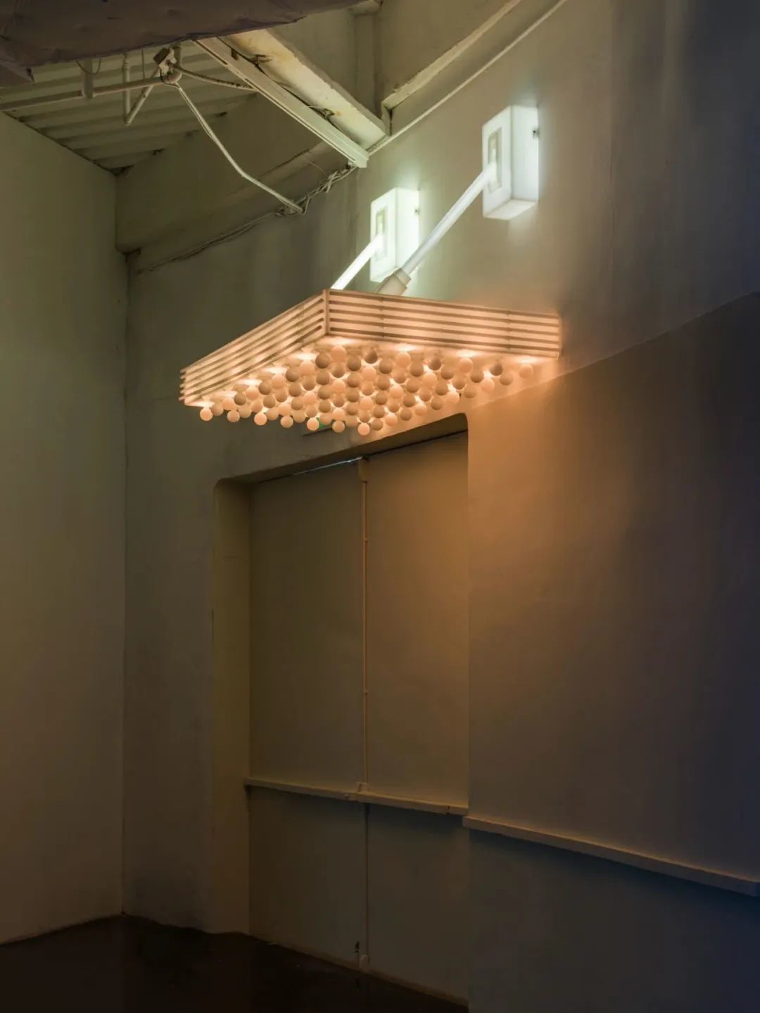 一进展厅,许多观众就会被一组熠熠闪光的灯所吸引。这件来自菲利普·帕雷诺的作品被放置在罐体后门的门头位置上,恰似对于观众观展路线的指引。