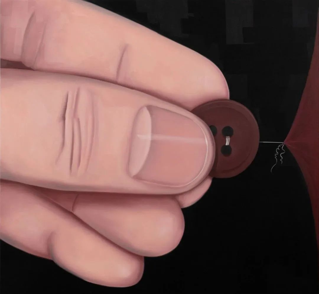 比例和身体是托马什·克雷奇茨基绘画的主题。他对日常事物和物品的描绘极具荒诞主义元素,而这些依赖于简化且重复的图形的形式,展现了艺术家对具象中的抽象的持续探索。被放大的怪诞感手指、身体部位或物体,看起来像巨大的彩色形状,徘徊在可被识别的临界点上。与此同时,那些着力于描绘日常物品的作品,比如威吓鸟类用的黑色长电线、图钉甚至是一个松动的按钮,都会唤起人们的焦虑和不详预感。克雷奇茨基的创作主题必然是存在主义的,传递出了当代政治以及它对个人的影响。