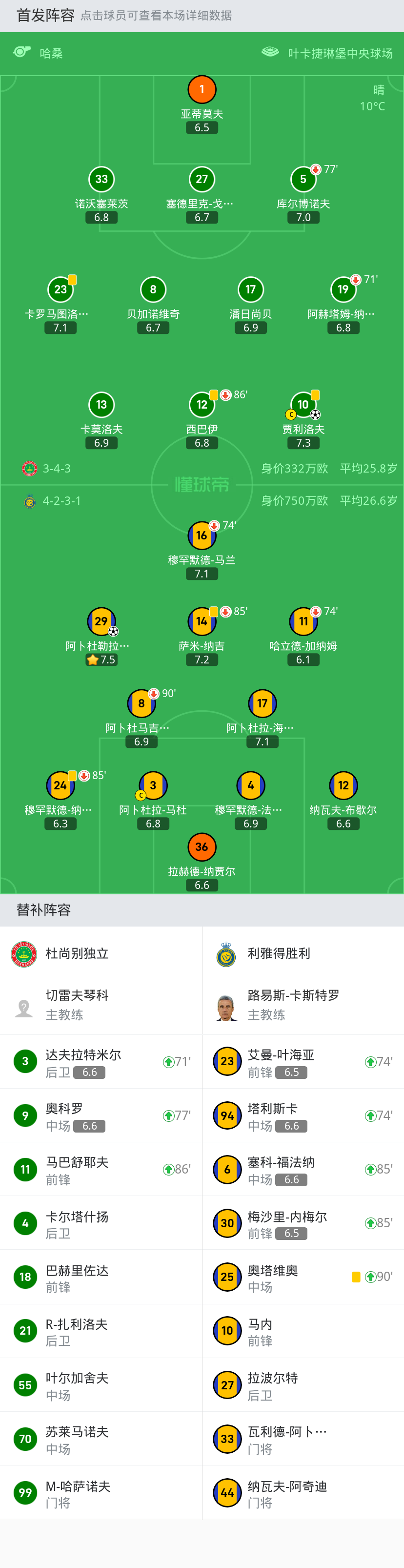 替换下场:71'19-阿赫塔姆-纳扎罗夫, 86'12-西巴伊, 77'5-库尔博诺夫