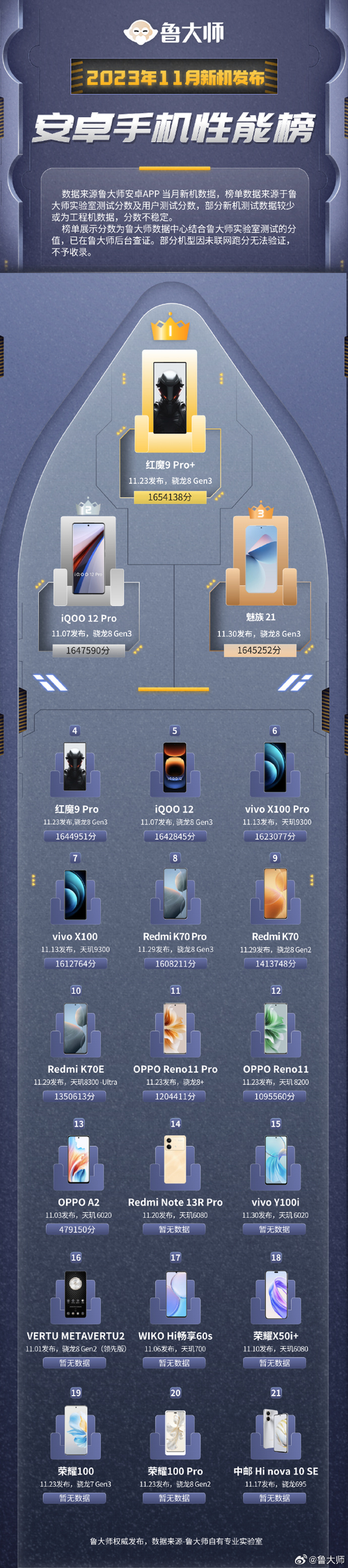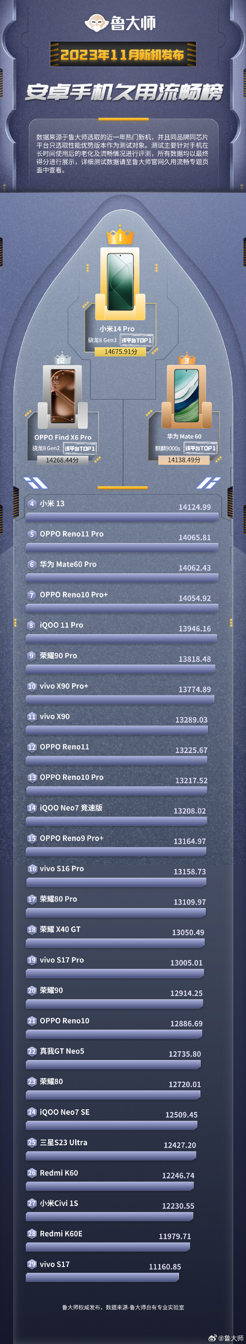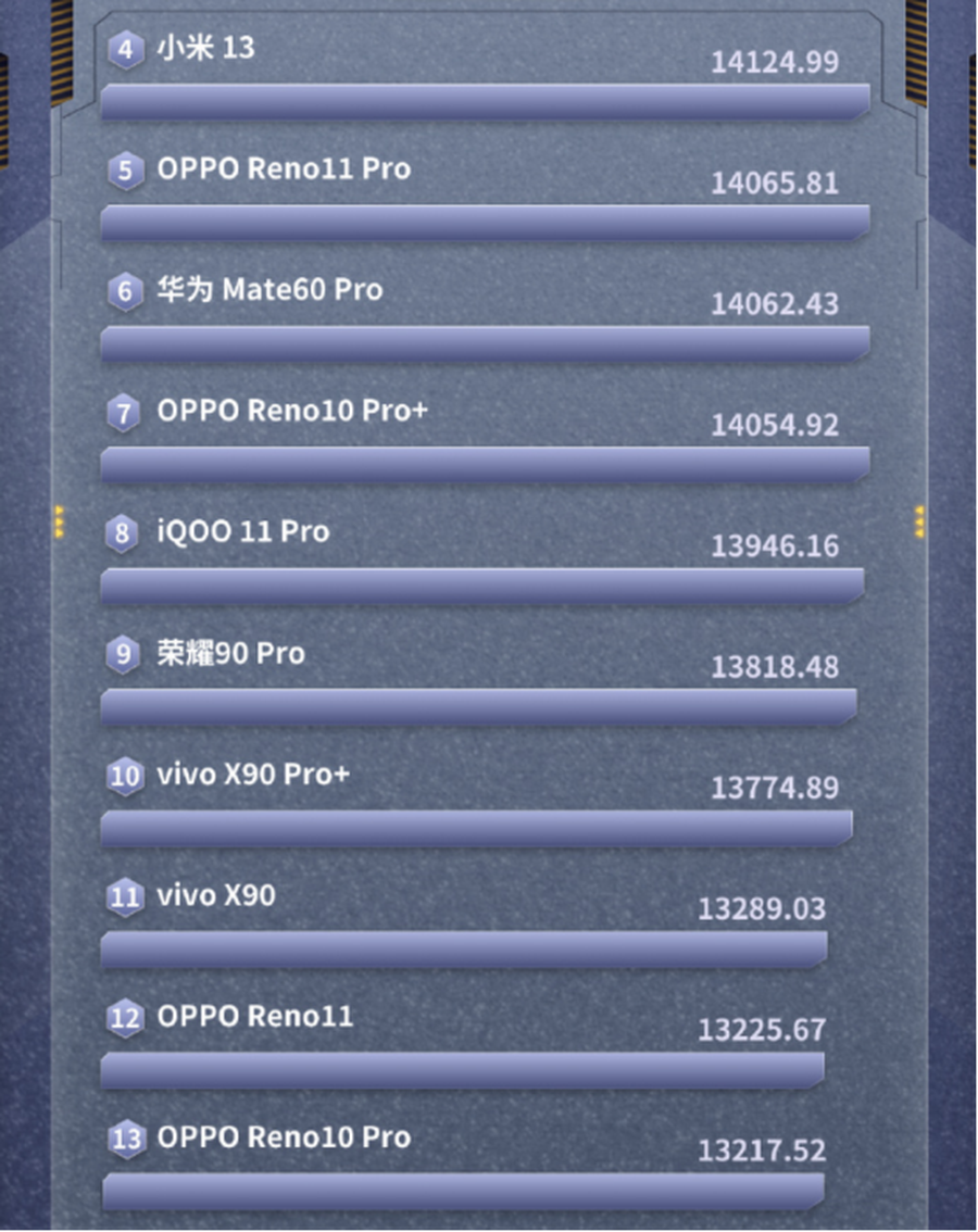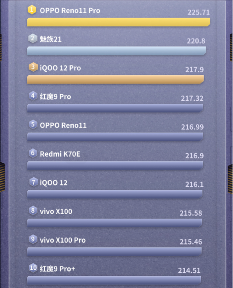 不仅Pro版排名No .1,OPPO Reno11标准版也排名第五,两款手机均具备出色的流畅体验。
