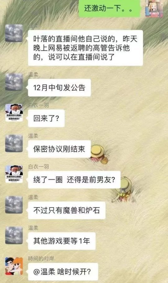 有网友爆料,叶落在直播中宣布已经得到了返聘的网易高管的第一手消息,暴雪游戏中的魔兽世界和炉石传说将会首批回归,其他游戏还需要再等一年,并且正式的公告在12月中旬就会发布。