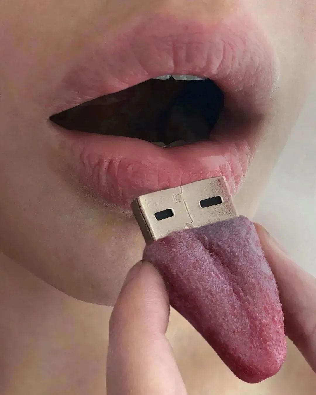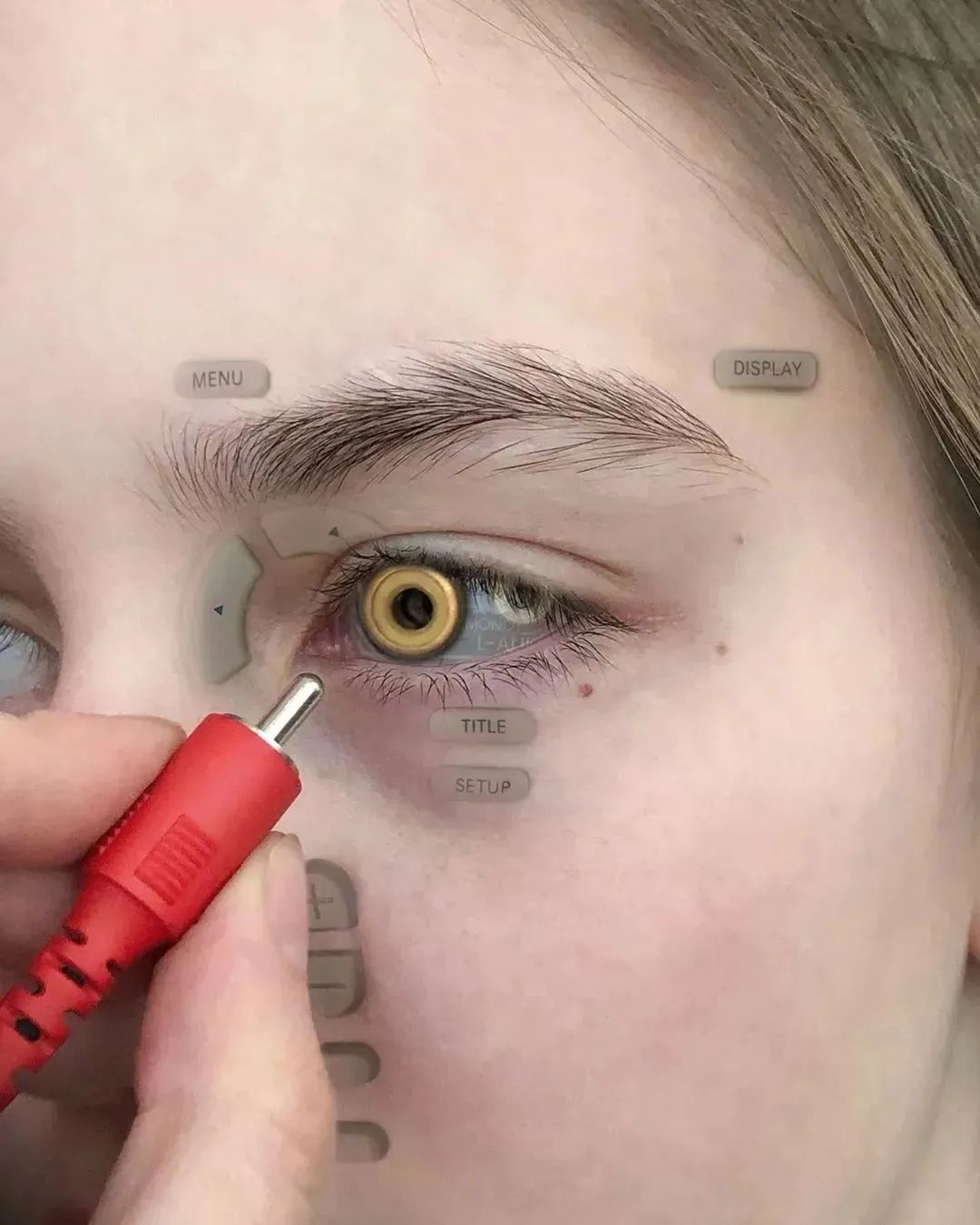 她让眼睛成为数据线的接口,手背变成存储卡的读取槽,把舌头设计成可插拔的U盘。换个角度看,Zaruma也无疑是这个数字时代的逆反者、报复者,她收集这些被人遗弃的电子产品,并赋予它们新生。那些曾经经历的、视线范围内的事物都会成为生活碎片,被烙印在脑海中,再将其加入自身思考进行创作,便成就了独到的作品。