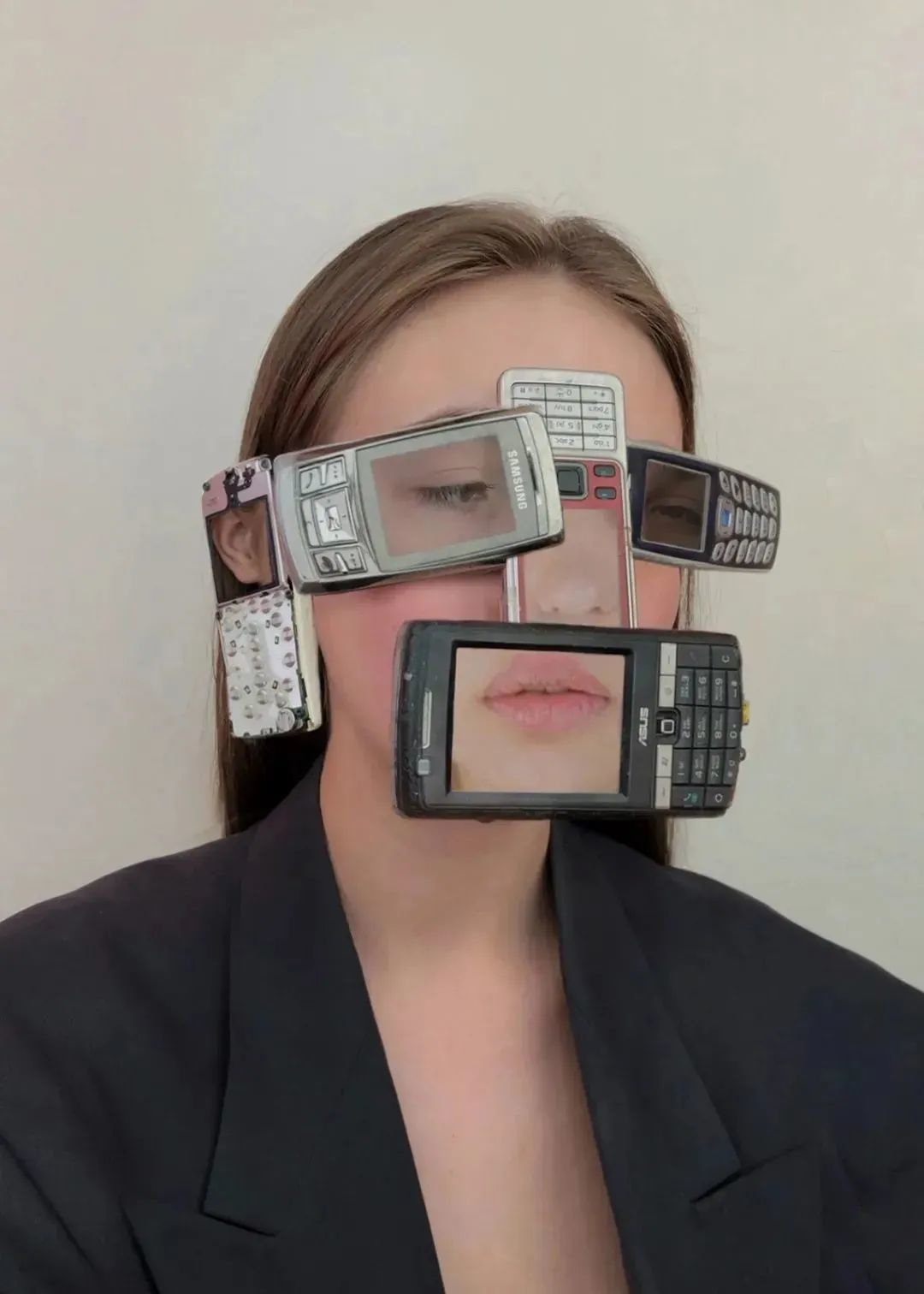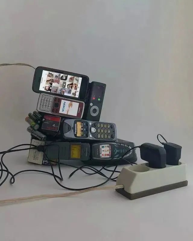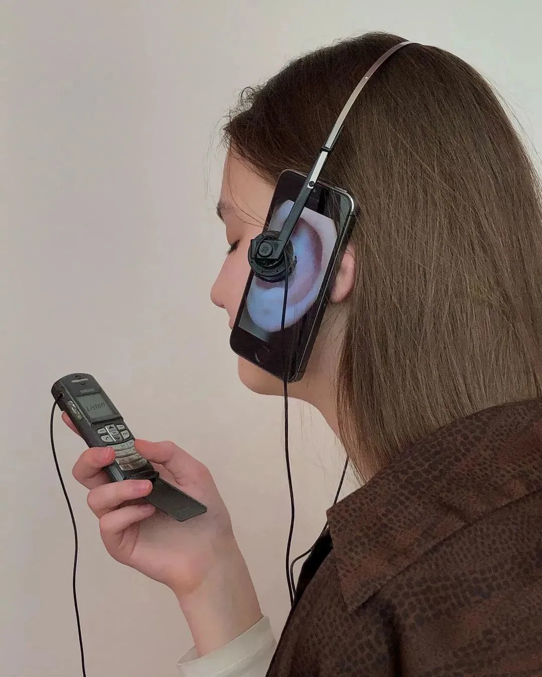 对于21岁的Hanne来说,这是她艺术创作的灵感来源。但如果只是复古元素的生硬堆砌,她的作品就不会这样吸引人了。满屏的老旧电子设备——磁带、按键手机、单色显示屏、胶片相机和发黄的电脑键盘,仿佛一键回到千禧年代,当然还有我们手边的智能手机,二三十年后回看,也将古早味满满。