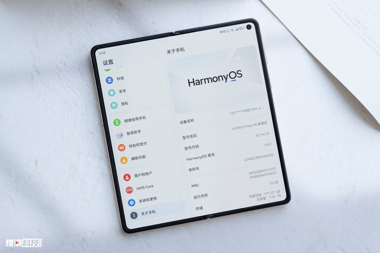 在功能性和可靠性都达到了极高水平的前提下,华为 Mate X5 也针对机身的便携性实现了一次又一次的优化,展开时的机身厚度仅为 5.3mm,折叠起来也仅有 11.08mm,其重量已经跟不少配置相近的旗舰直板手机相当,可以说是真正将旗舰大屏配置浓缩在了直板机类似的机身里。