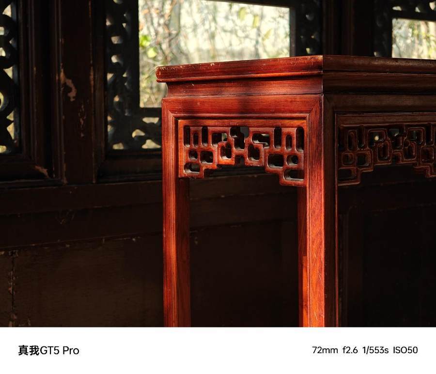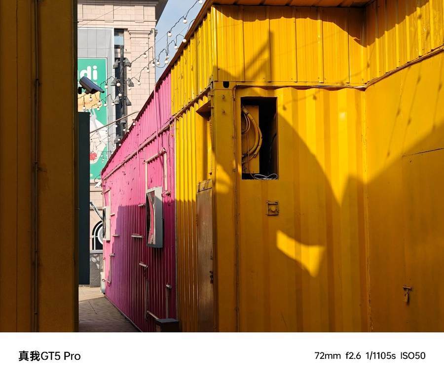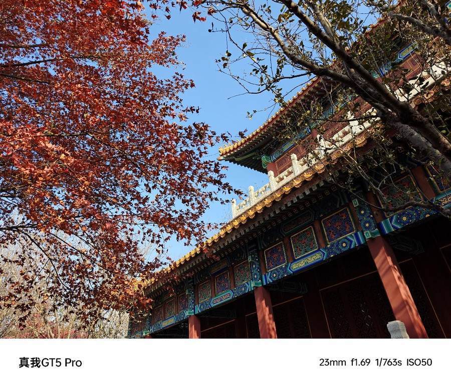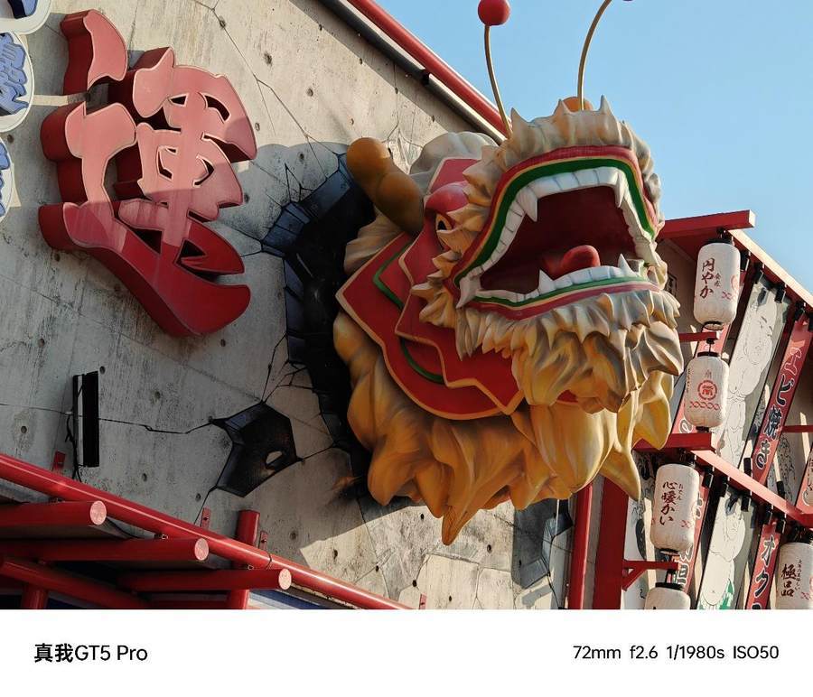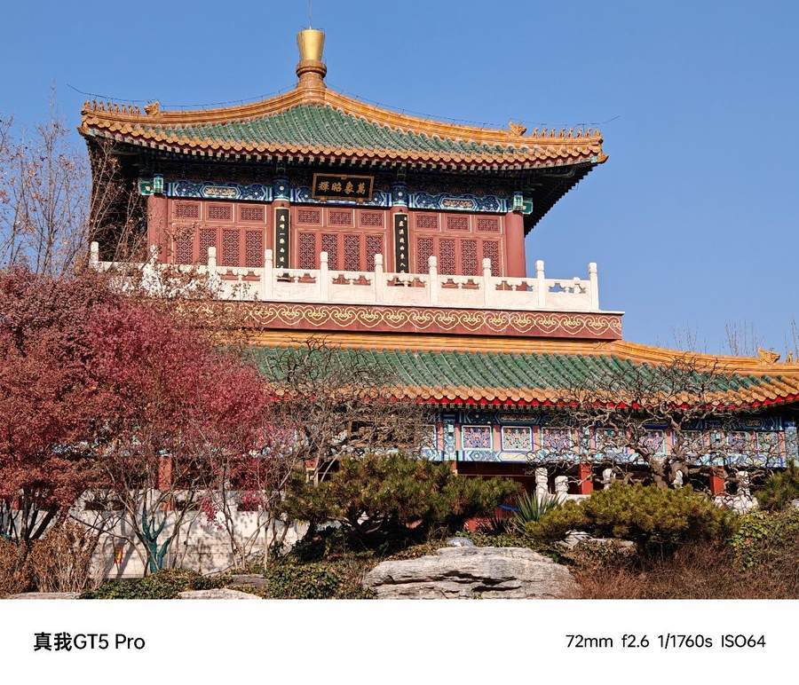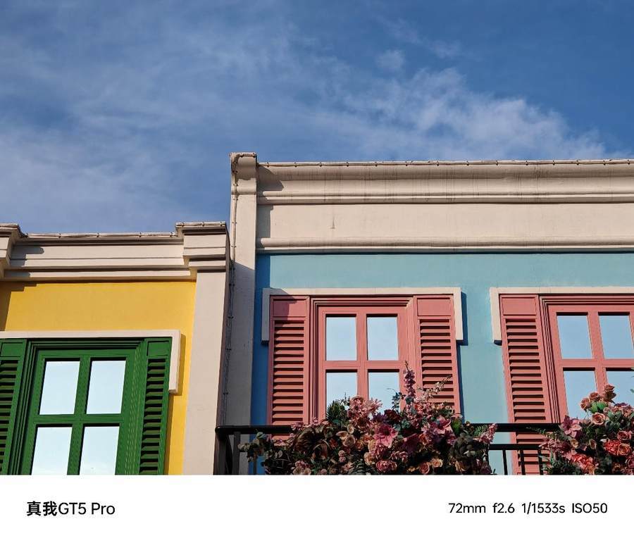 真我 GT5 Pro 潜望式长焦镜头配备了 5000 万像素 IMX890 大底传感器,感光面积高达 1/1 .56 英寸和大多数旗舰手机的主摄感光面积相当 。从实拍的样片来看,其表现完全 符合旗舰级主摄的画质水平,不但细节清晰、色彩层次丰富,同时也能够正确表达拍摄 场景所处的光影关系,完全是当下性能手机中的天花板水平。