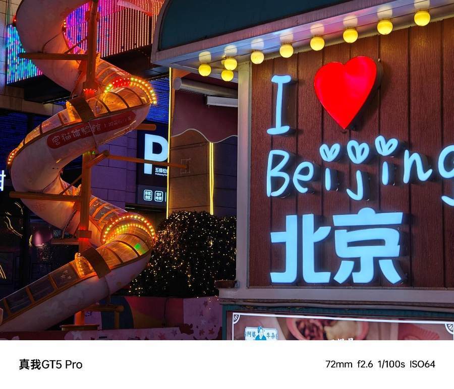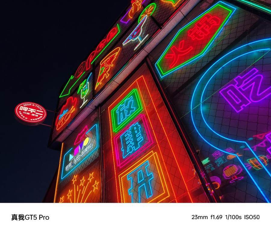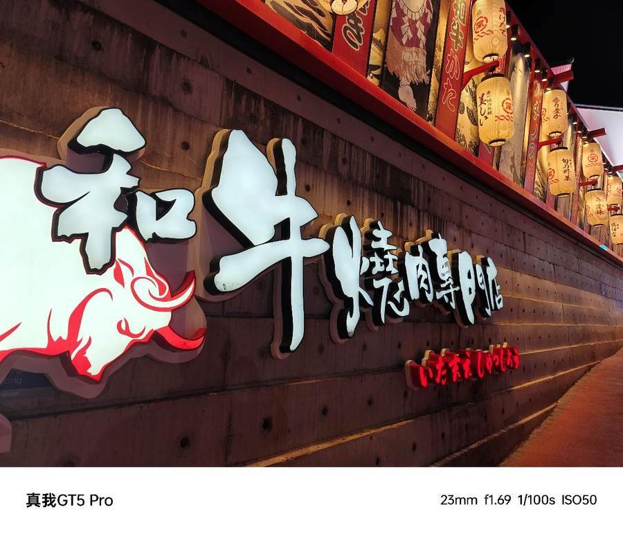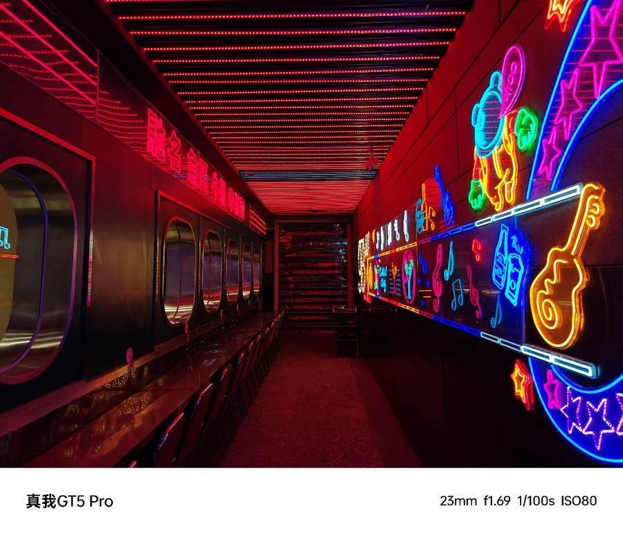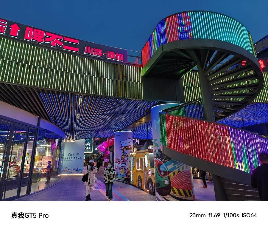 对于夜晚和暗光环境的拍摄,在真我 GT5 Pro 夜景模式下拍摄出的画面同样非常清晰, 并且各焦段的成像素质十分优秀,整体色彩、曝光也还原的非常到位,和实际的观感接 近 。尤其是以往比较难拍摄的夜晚灯光,真我 GT5 Pro 同样可以很好的还原出了虹灯管 的颜色与质感,与肉眼所见到的效果一样。